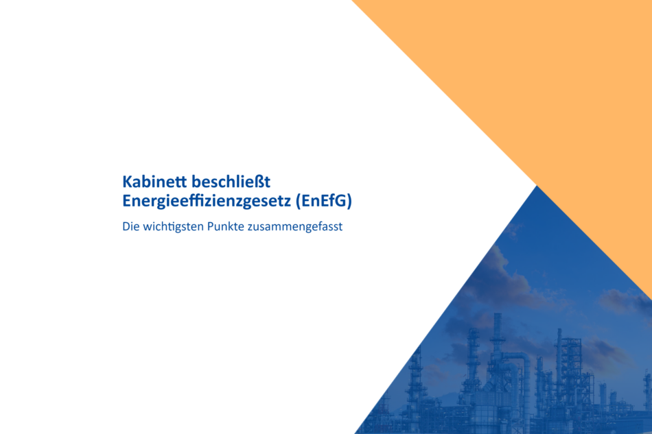 Das Kabinett beschließt das Energieeffizienzgesetz (EnEfG) Mit dem im April beschlossenen Energieeffizienzgesetz (EnEfG) geht das Bundeskabinett einen weiteren Schritt zur Eindämmung des weltweiten Klimawandels und zur Verbesserung der Versorgungssicherheit. Wir berichteten bereits über den Referentenentwurf und möchten Sie jetzt über die finalen Entschlüsse informieren. Unternehmen: Unternehmen mit einem Jahresenergieverbrauch von mehr als 15 GWh (Durchschnitt…